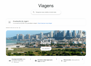 O Google Travel é um serviço que ajuda os usuários a encontrar passagens aéreas, hotéis e a planejar suas viagens. Ele é a junção do Google Flights, Google Trips* e o Google Hotels.